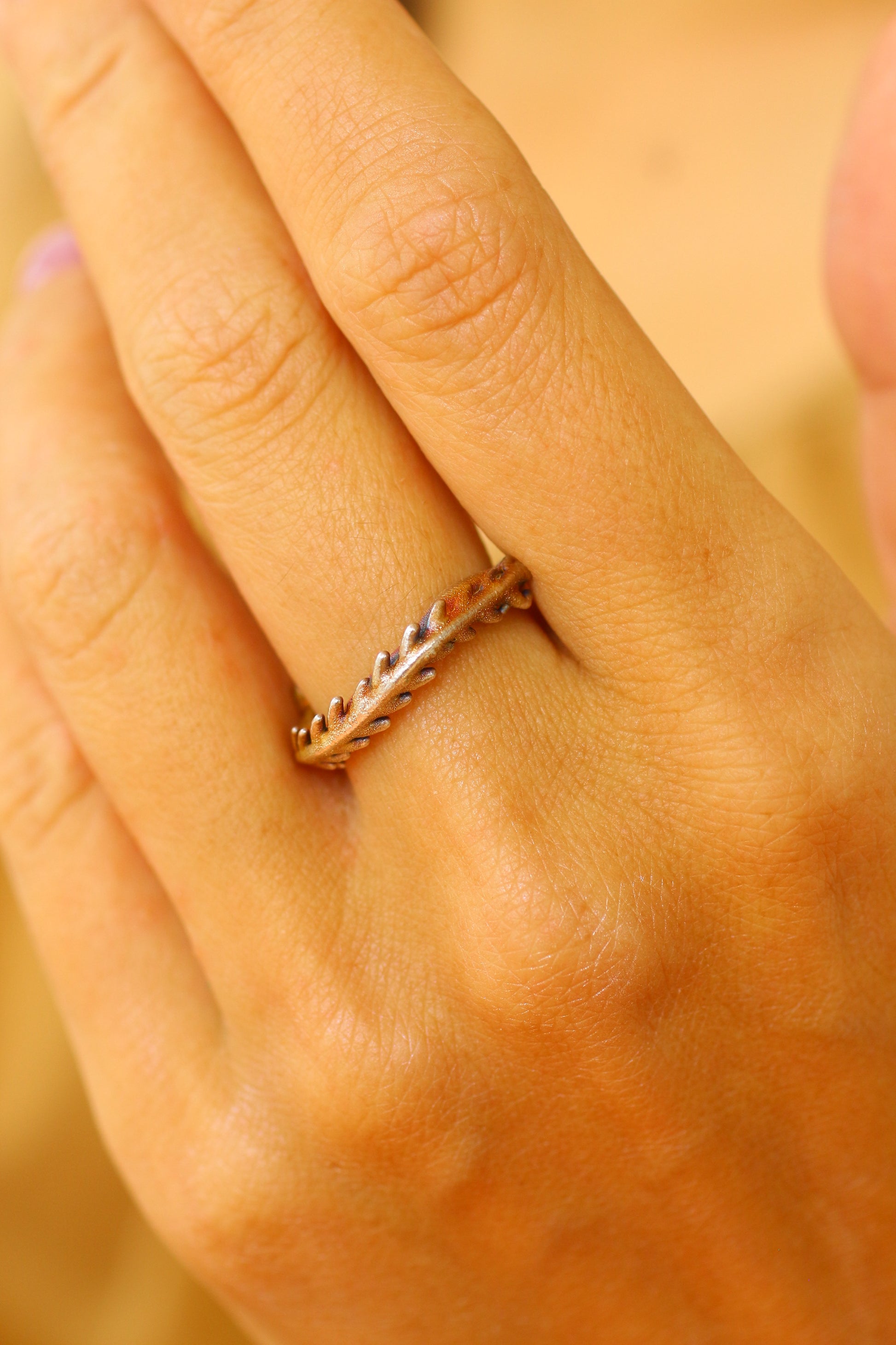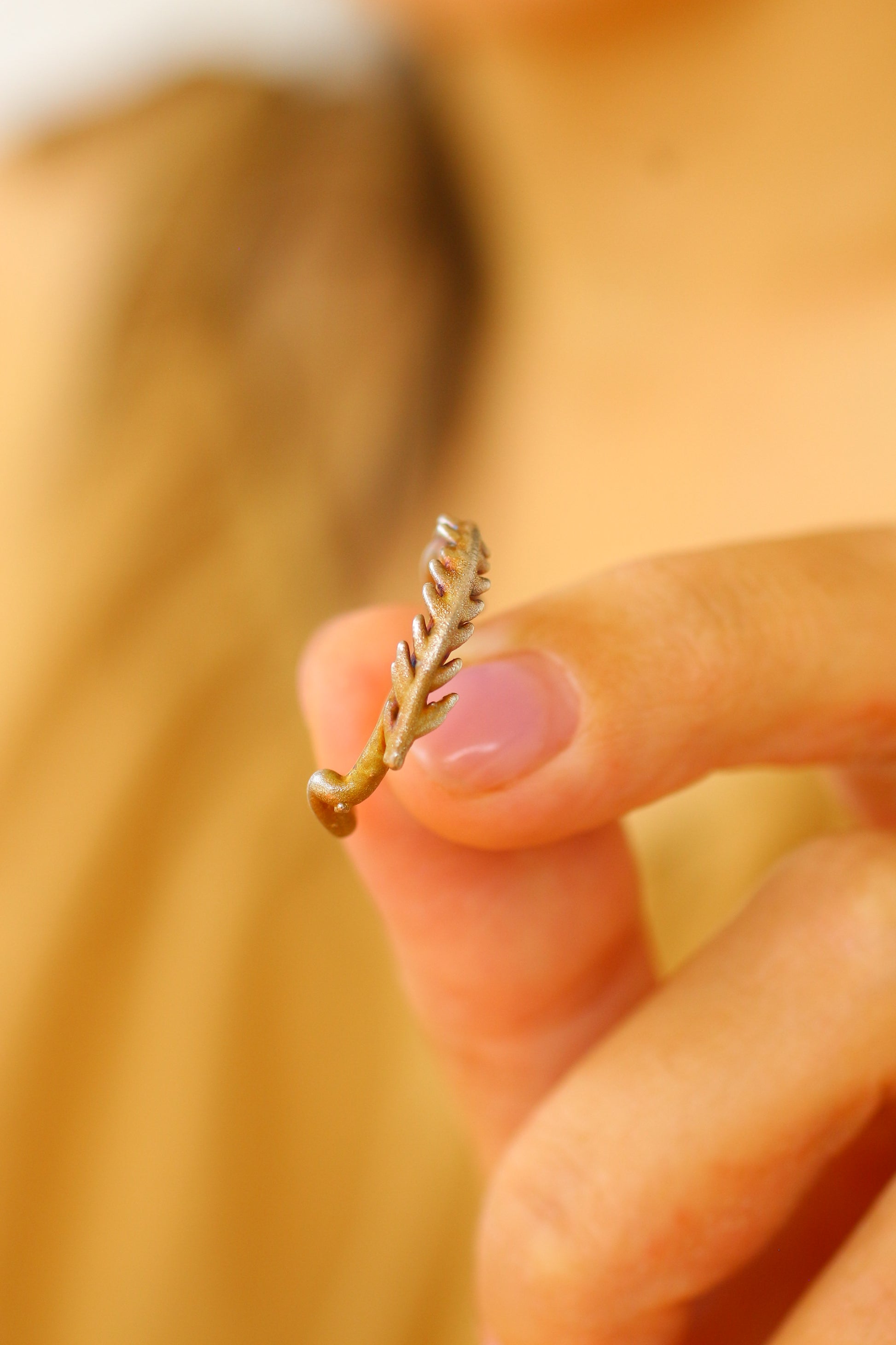 Anel com espiga de erva em prata colorida. Tamanho ajustável.