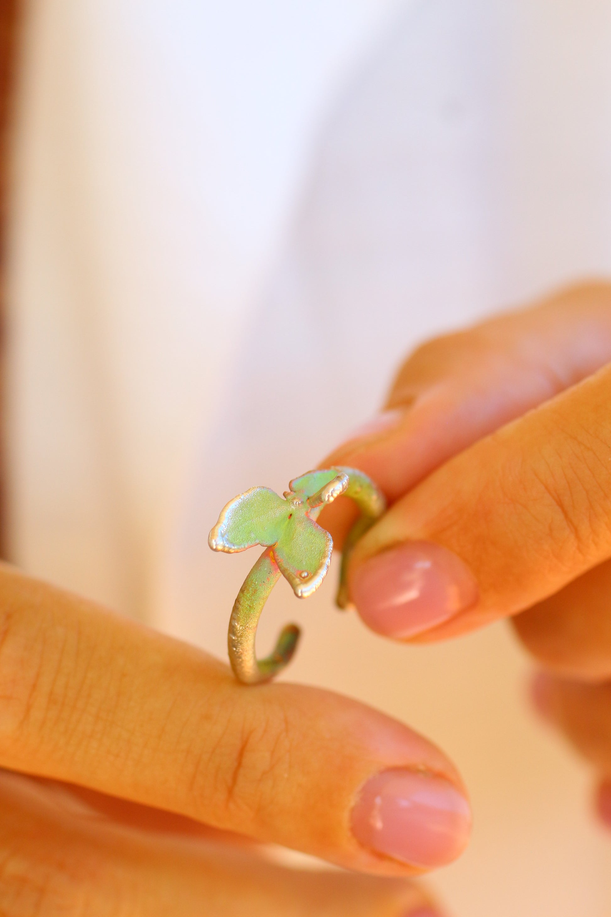 Anel com flor de hortênsia em prata colorida. Tamanho ajustável.