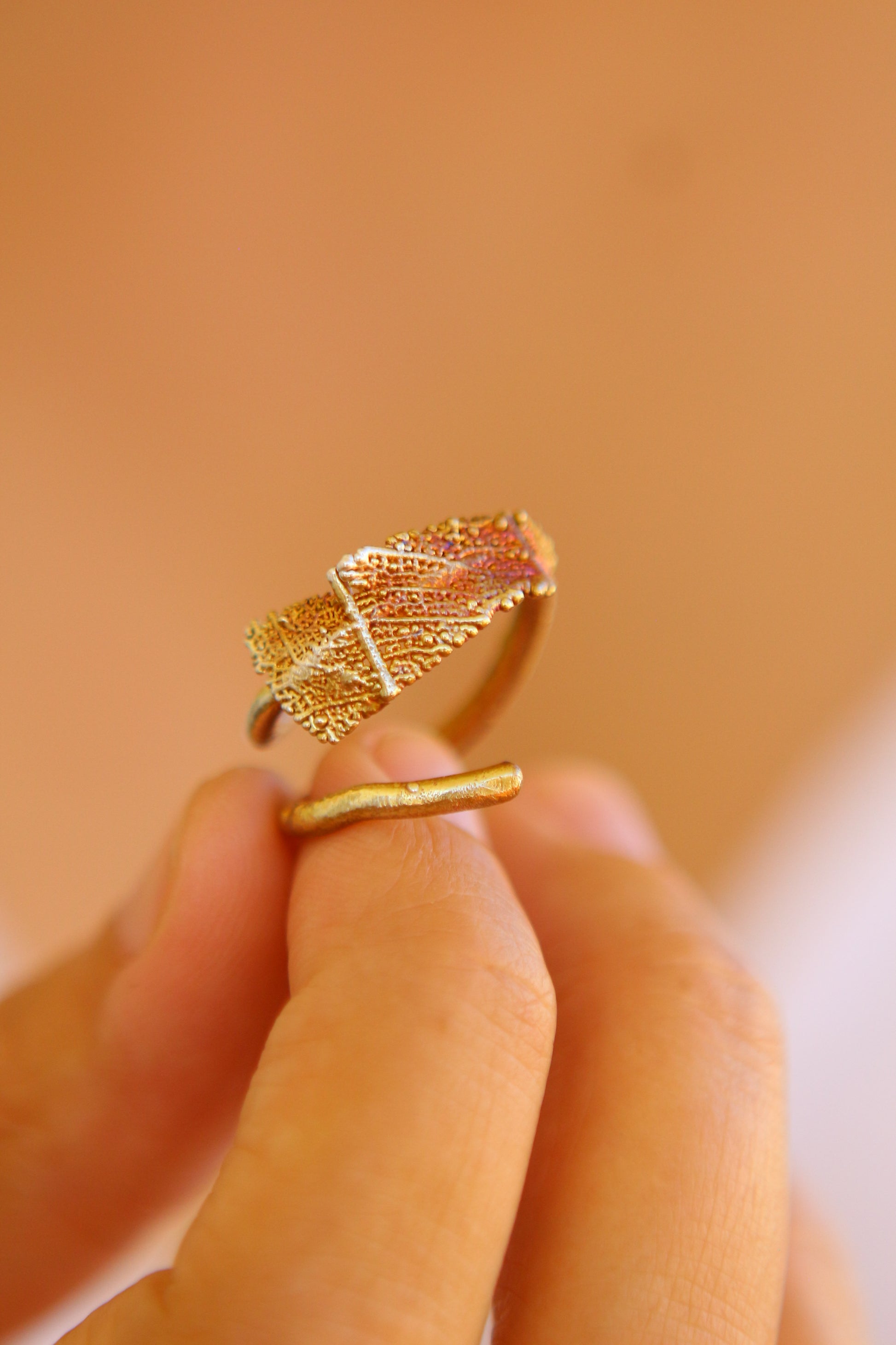Anel com fragmento de folha