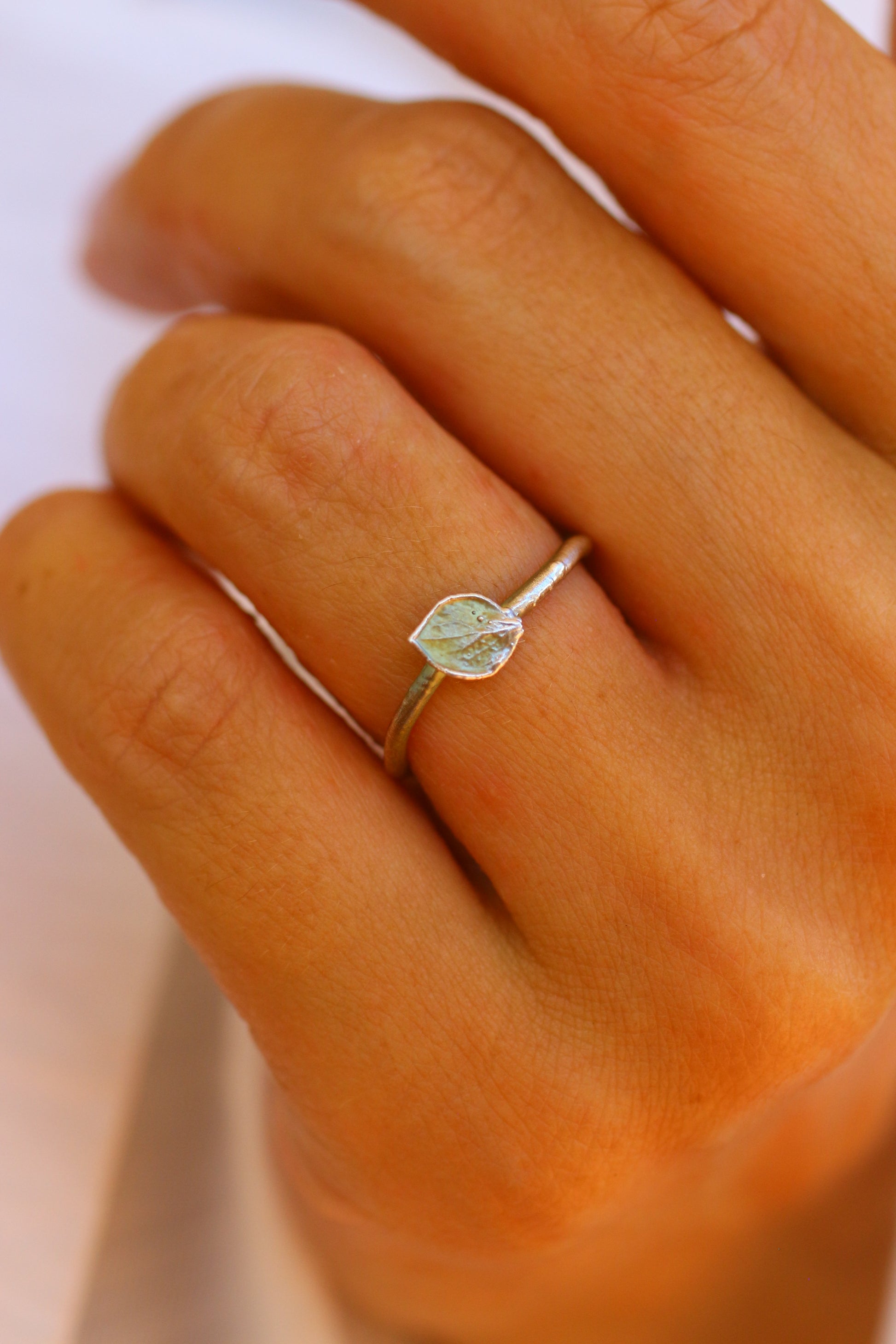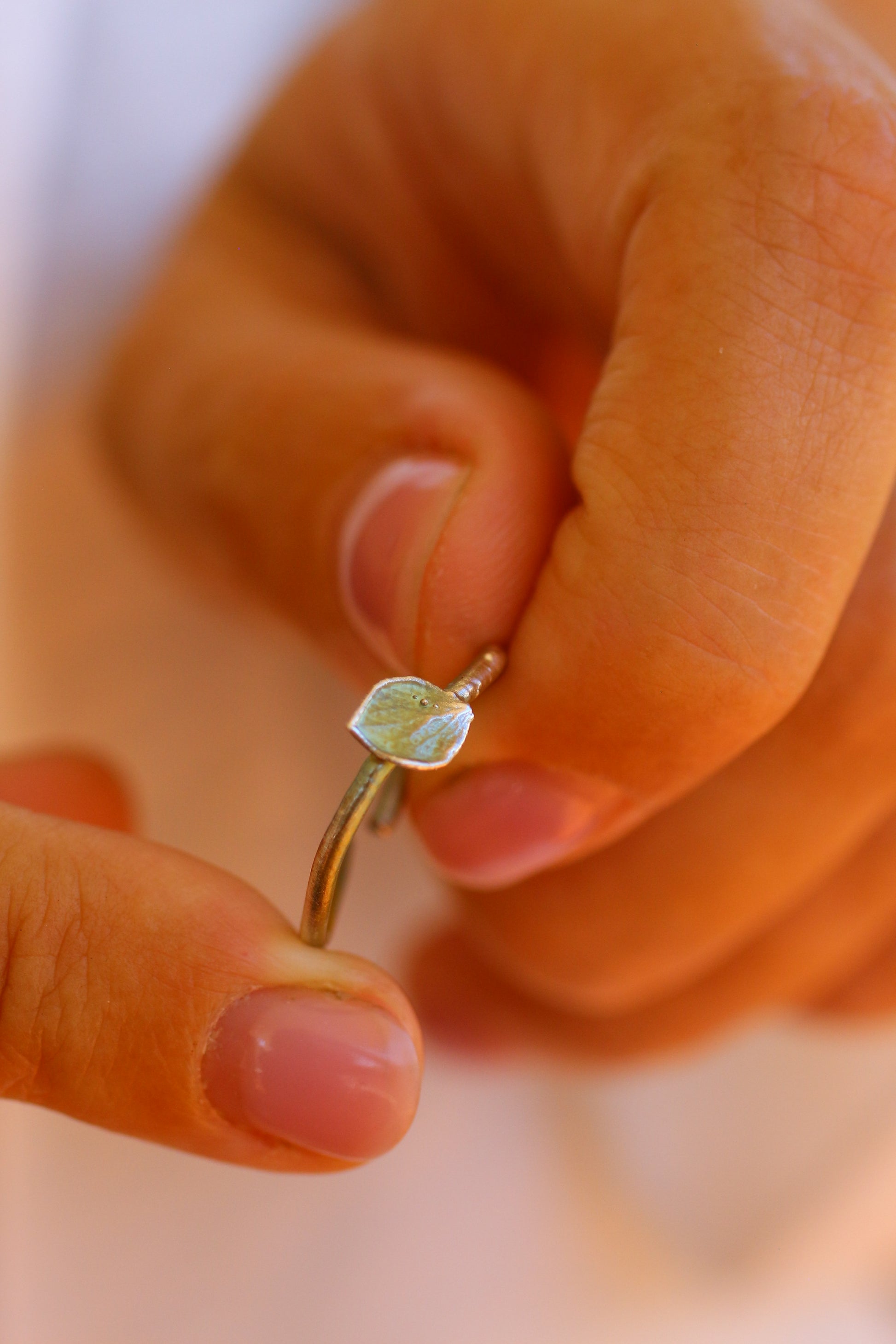Anel com pétala de hortênsia em prata colorida. Tamanho ajustável.