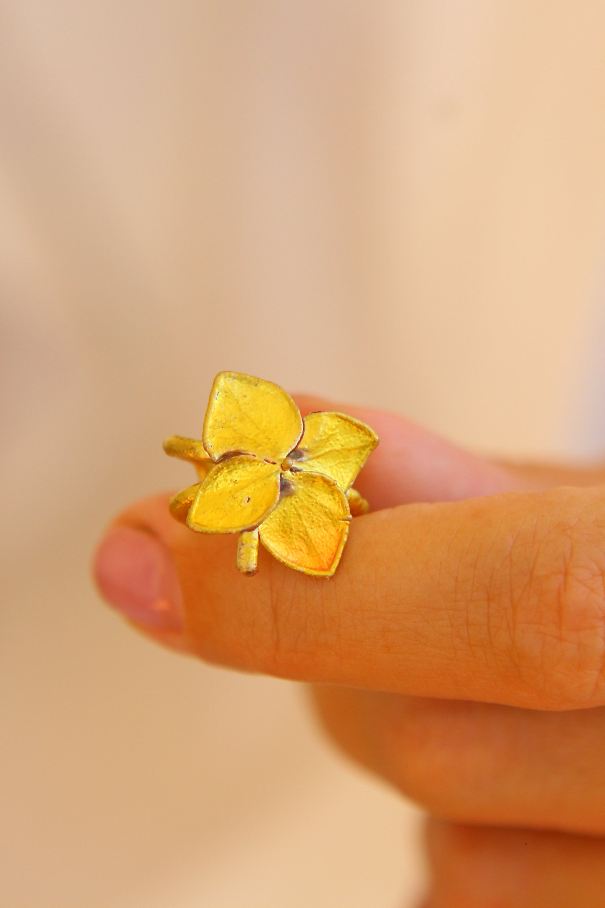Ear cuff com flor de hortênsia em prata colorida. Tamanho ajustável.