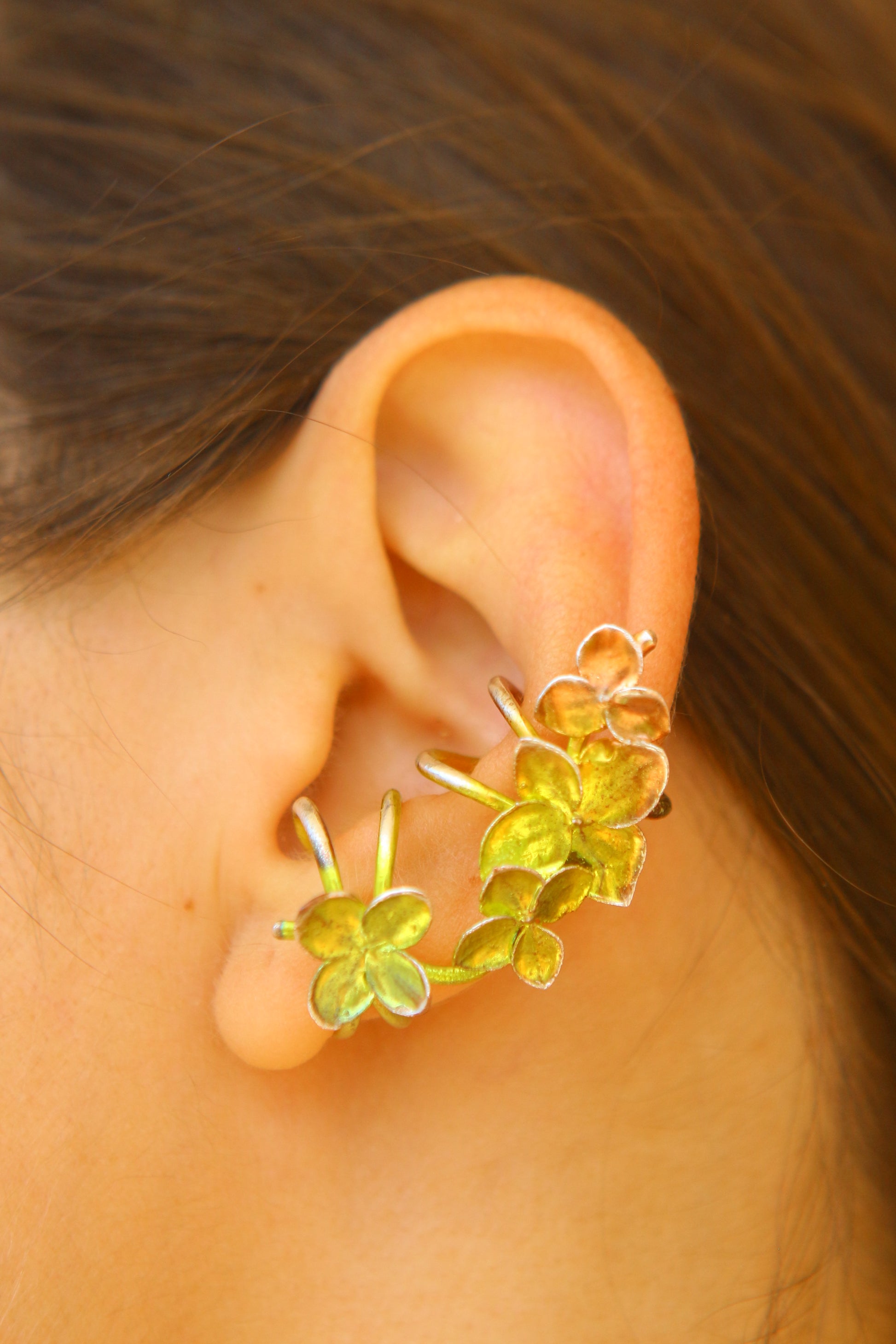 Ear cuff com flor de hortensia