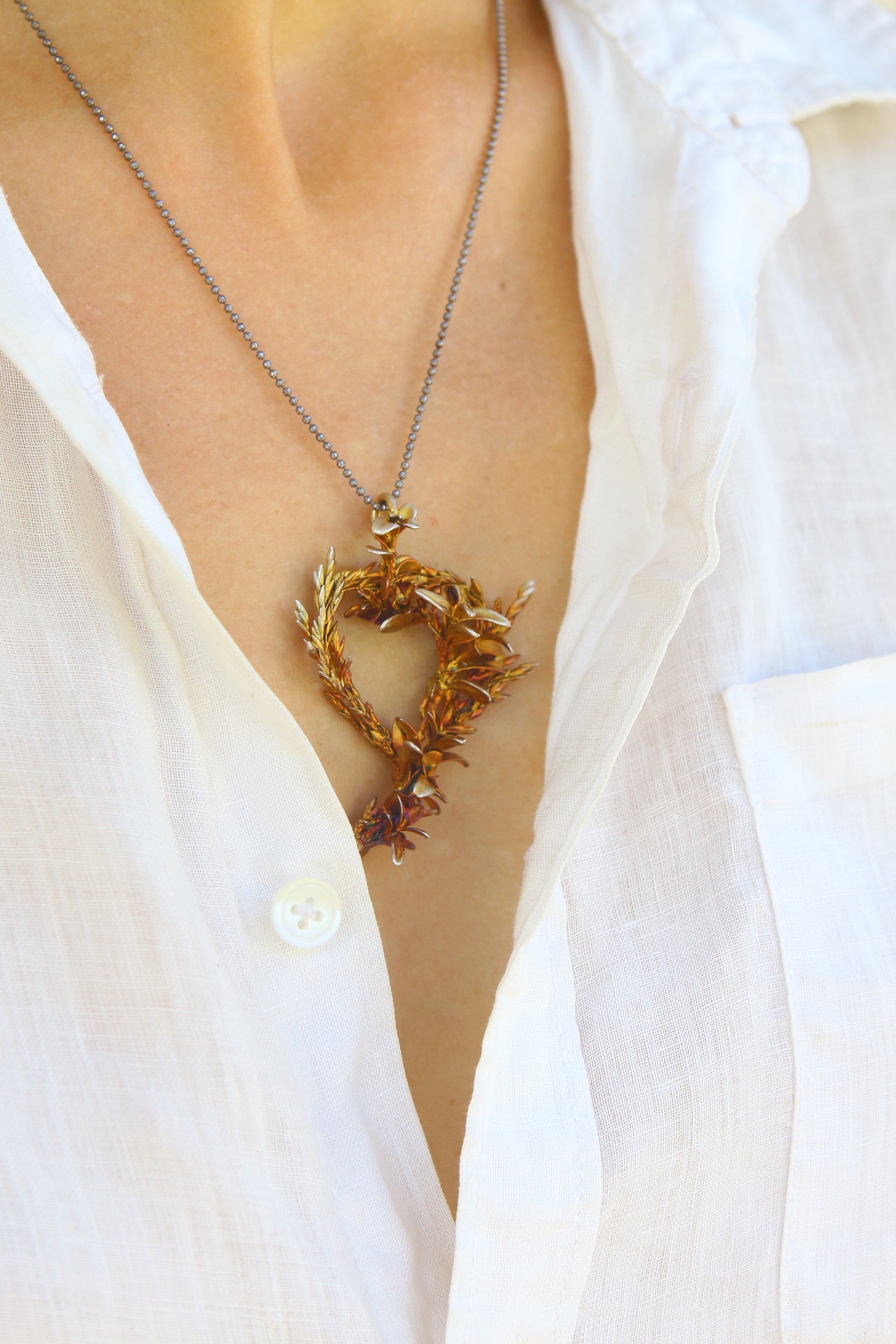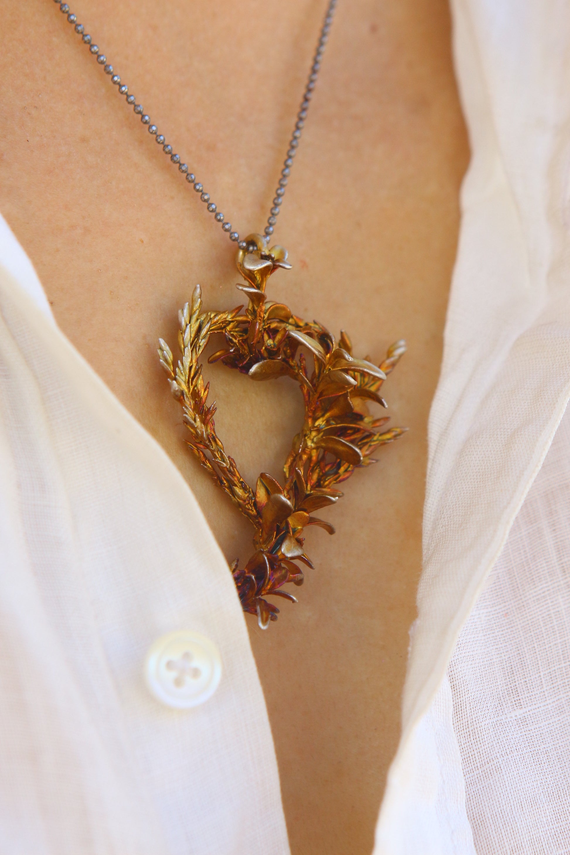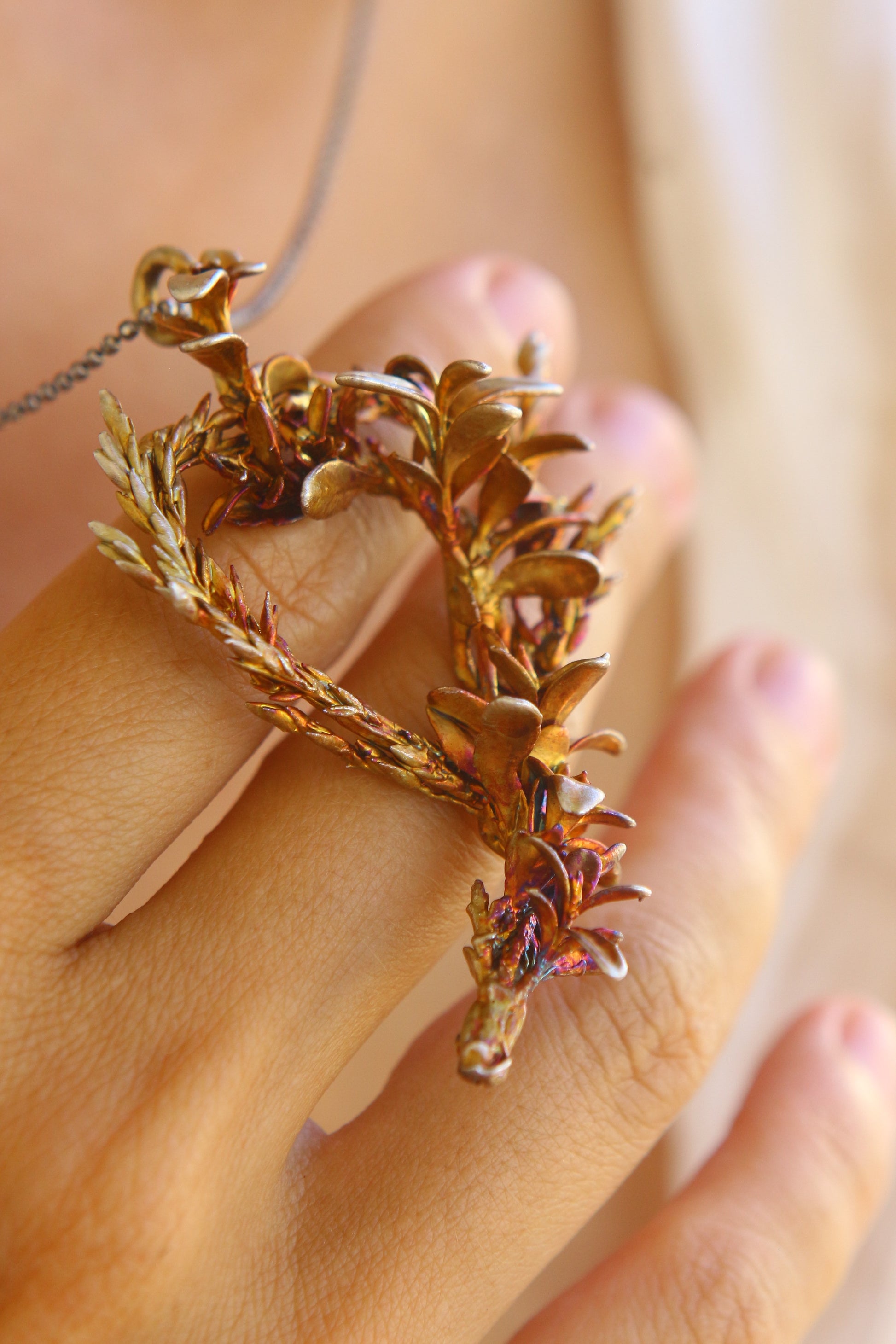 Pendente com ervas portuguesas em prata colorida.