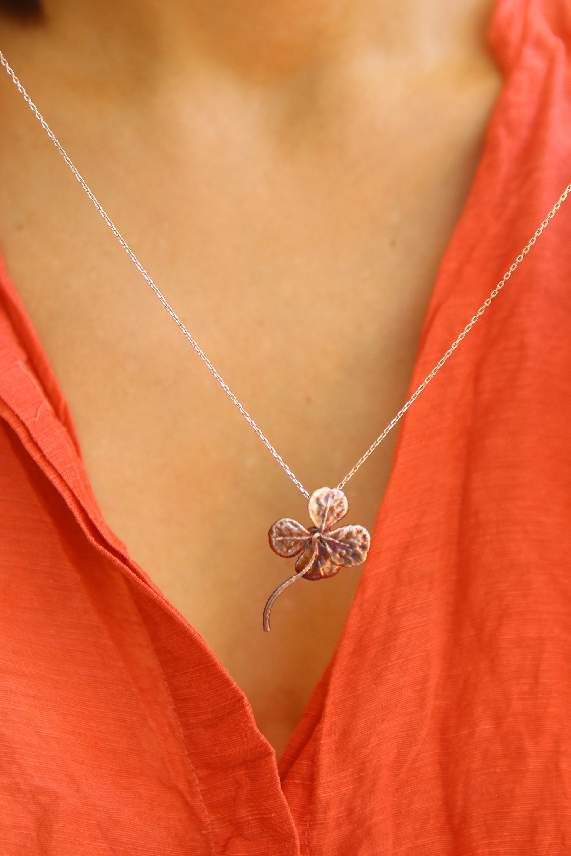 Pendente com folha de trevo de quatro folhas em prata colorida.