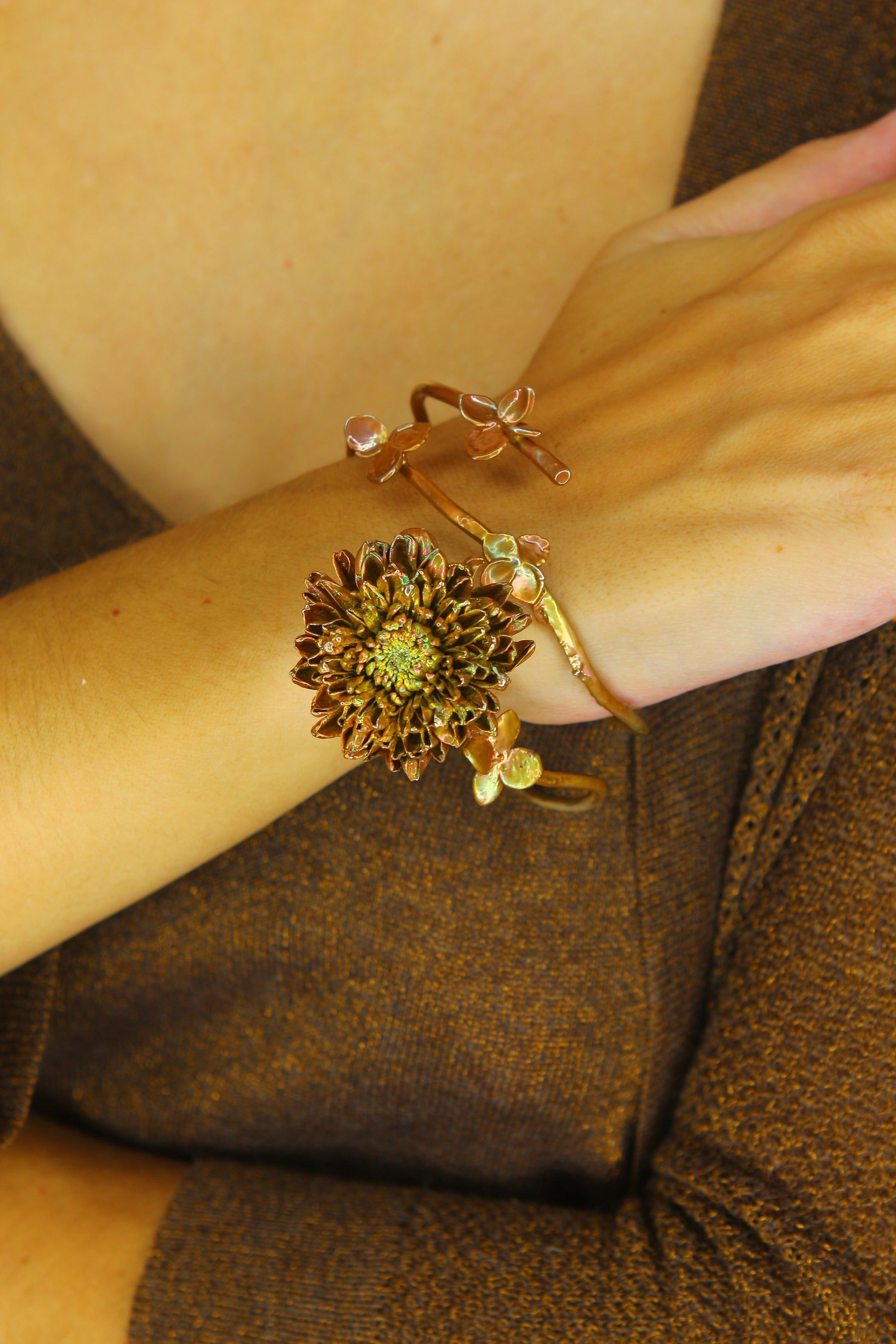 Pulseira com flor de crisantemo