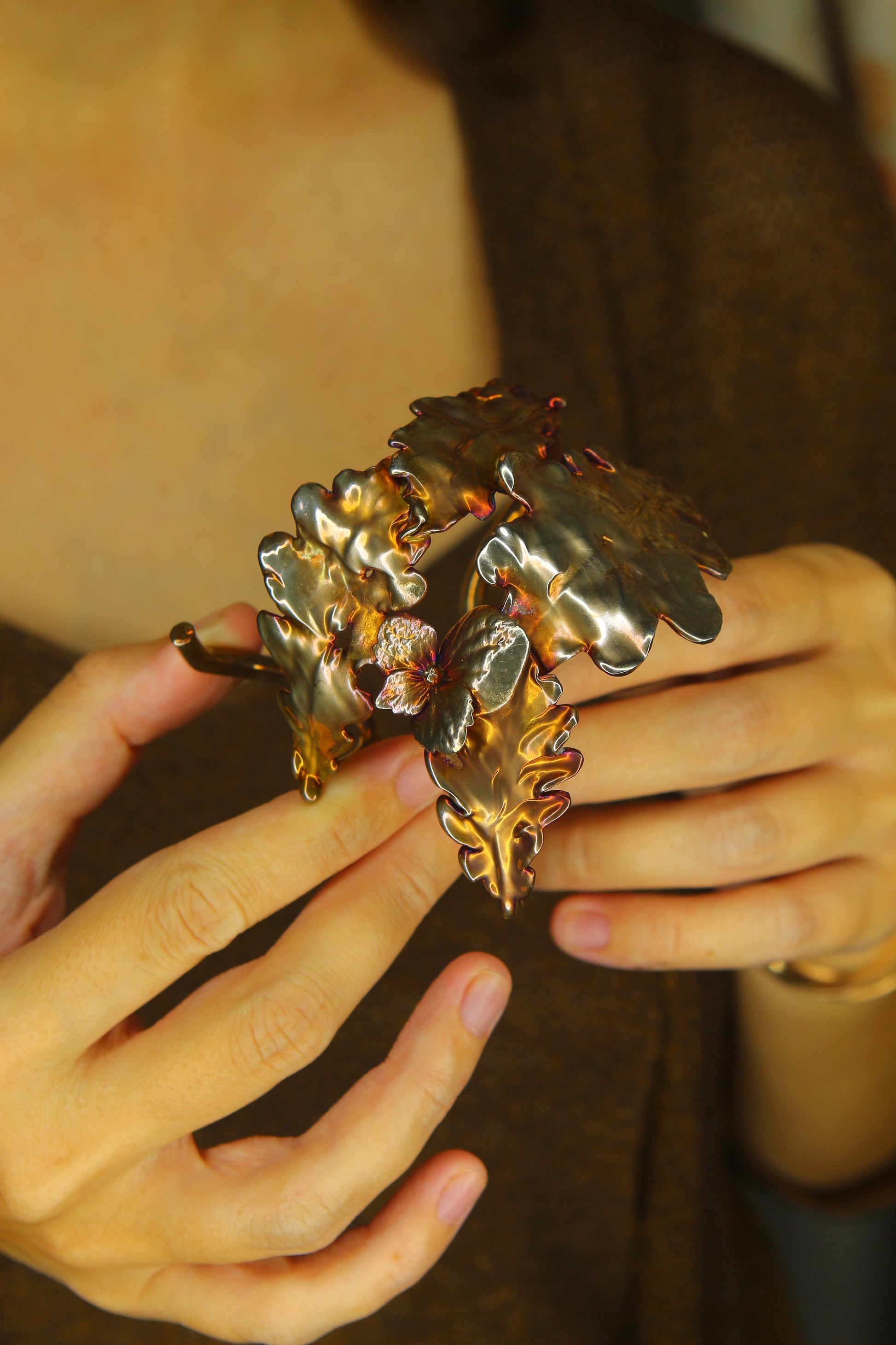 Pulseira com folhas de carvalho em prata colorida. Tamanho ajustável.
